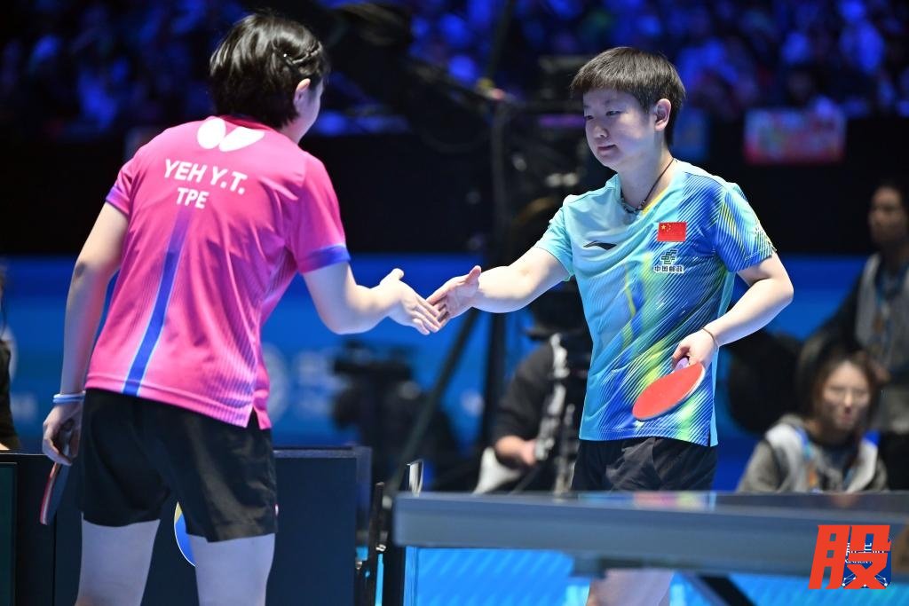 2月4日,孙颖莎(右)在比赛后与叶伊恬握手。新华社记者 郭程 摄