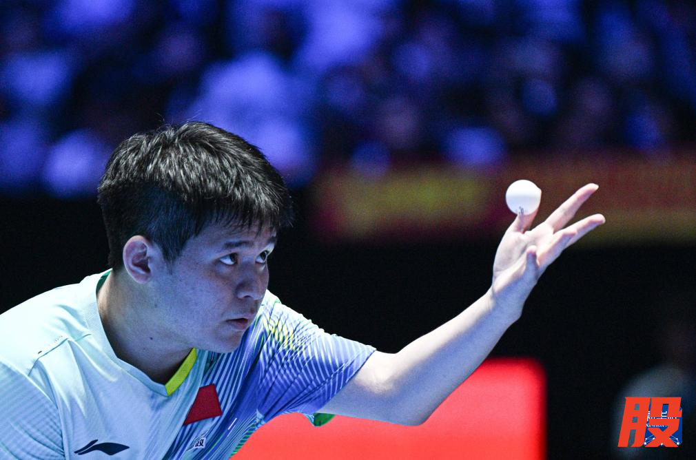 2月4日,林诗栋在比赛中发球。新华社记者 蒲晓旭 摄