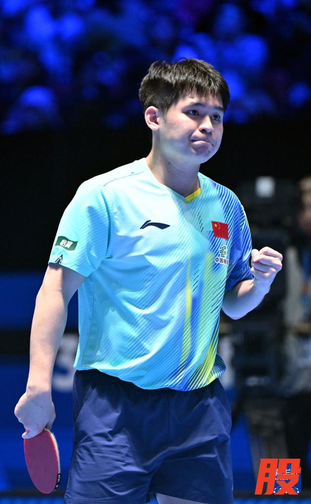 2月4日,林诗栋在比赛中庆祝得分。新华社记者 蒲晓旭 摄